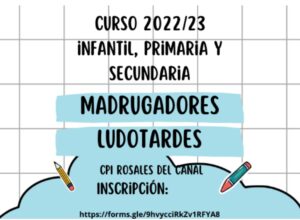 MADRUGADORES/LUDOTARDES CURSO 2022-2023 MADRUGADORES/LUDOTARDES CURSO 2022-2023 Colegio Rosales del canal2022-06-30T12:20:41+01:00 MADRUGADORES/LUDOTARDES CURSO 2022-2023Colegio Rosales del canal2022-06-30T12:20:41+01:00